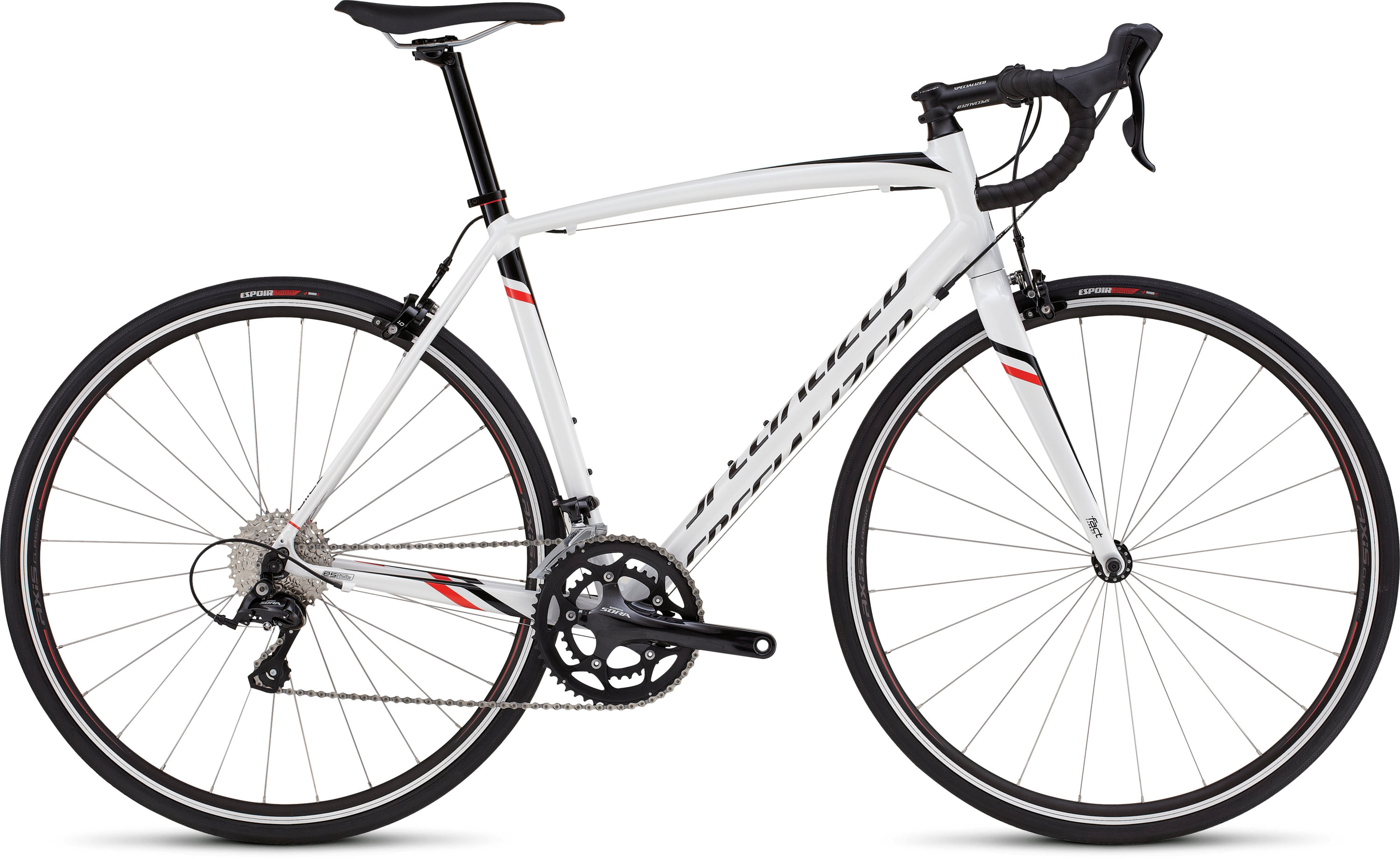 Winner of our 2016 best budget bikes shootout the allez e5 sport does its iconic model name proud buy if you re seeking a perfectly balanced bike to get started in the sport of road cycling. Kit is quality with components from shimano including the clean shifting claris 2x8 drivetrain tektro s dual pivot brake calipers and a light pair of axis alloy wheels. 9 speed shimano sora drivetrain and dependable wheelset delivers high end performance at a serious value. They also made changes to the three of their other models the allez the allez sport and the allez elite the allez sprint comp did not change.